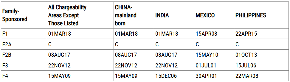 B. DATES FOR FILING FAMILY-SPONSORED VISA APPLICATIONS