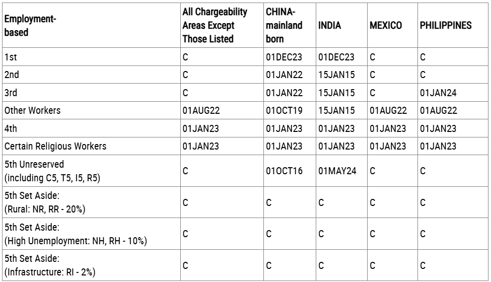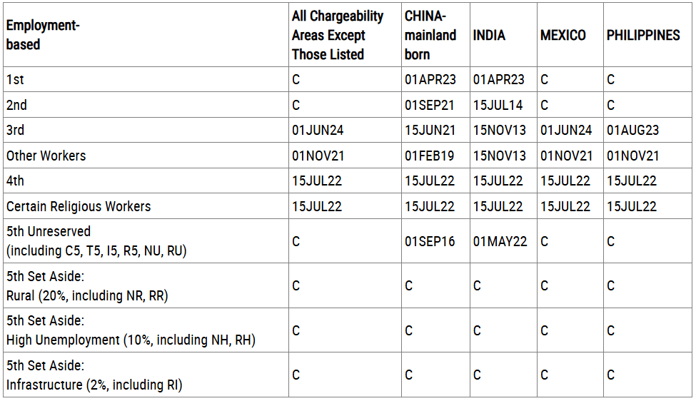 B. DATES FOR FILING OF EMPLOYMENT-BASED VISA APPLICATIONS