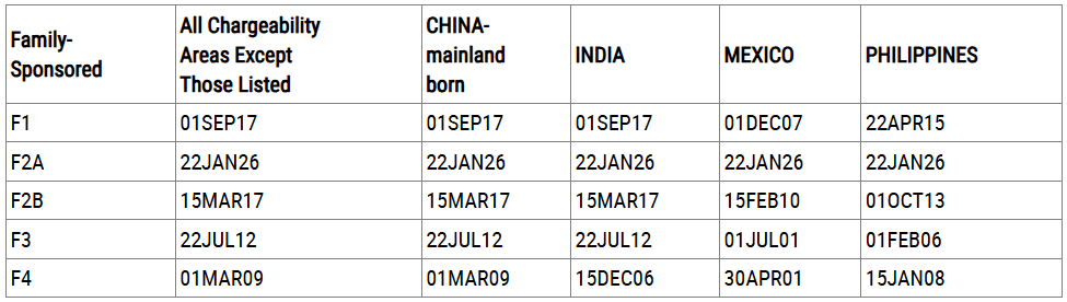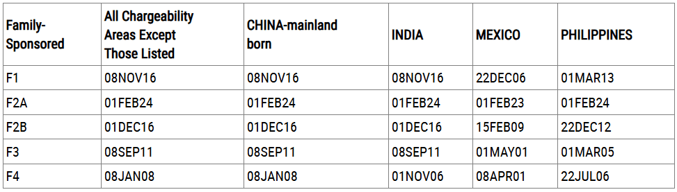 B. DATES FOR FILING FAMILY-SPONSORED VISA APPLICATIONS