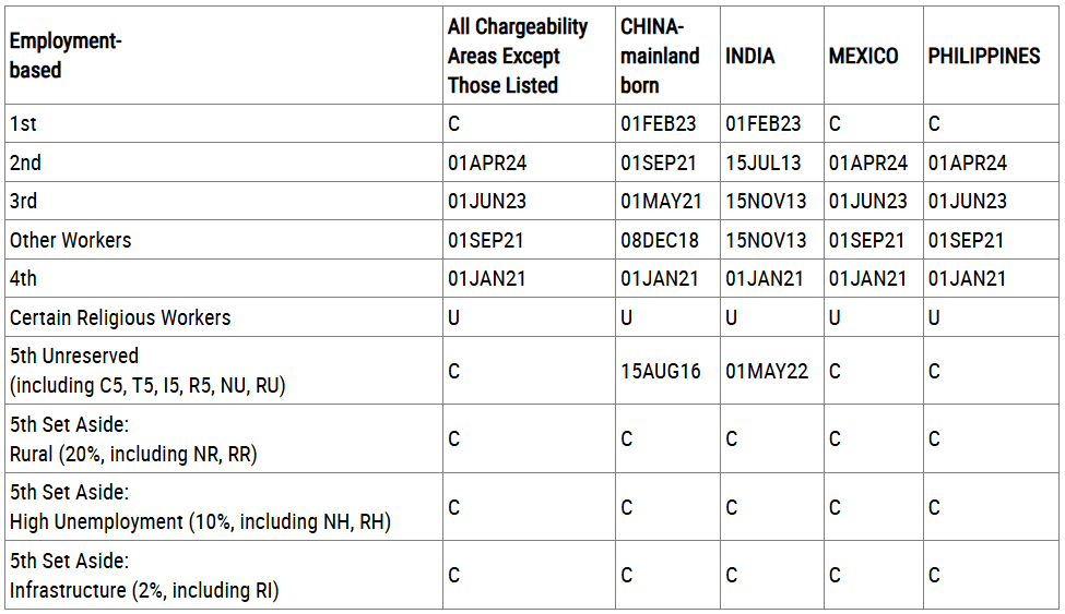 B. DATES FOR FILING OF EMPLOYMENT-BASED VISA APPLICATIONS